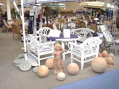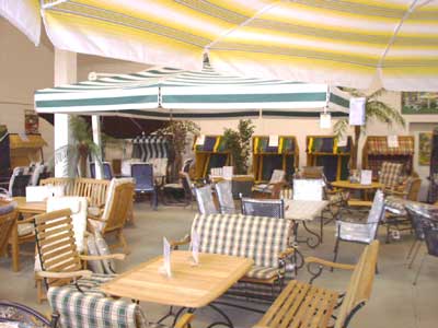 Im Trend liegen Teak-Alu Kombinationen,natürlich mit Zertifikat (FSC).Selbstverständlich bekommt der Kunde federleichte Aluminium-Möbel in pulver-beschichteten Trendfarben oder Rattan-Look.Klassische Landhausmöbel gehören genauso dazu wie nostalgische Eisenmöbel.Abgerundet wird das Programm durch edle Polsterauflagen in aktuellen Dessins,natürlich auch voll abziehbar und waschbar.Zukunftweisend stehen auch innovative, funktionelle Sonnenschirme,die sowohl den kleinen Balkon als auch die gesamte Terrasse überdachen,zur Verfügung.Von der Standard bis zur Luxusausführung gehören Strandkörbe in unser Sortiment.Kunden,die sich ihren Traum vom Wintergarten ermöglichen wollen,finden ständig eine große Auswahl an zeitlosen Rattanmöbeln kombiniert mit edlen Polsterauflagen.Lampen und Accessoires,abgestimmt auf die jeweiligen Korbmöbel bilden in Kombination mit Tischdecken und Dekostoffen eine perfekte Harmonie als Übergang zum Wohnbereich.